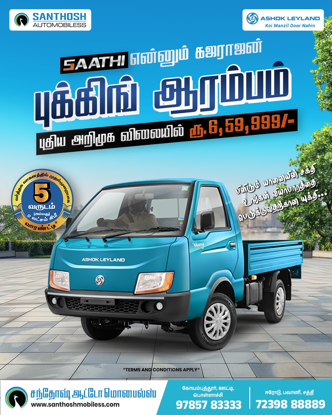 Santhosh Automobiless is an authorized dealer of Ashok Leyland’s esteemed light commercial vehicles in Tamil Nadu. Since 2020, we have been recognized for excellence in delivering vehicles tailored to customers’ needs. As a prominent automotive dealer with over 4 years of pioneering experience in the automotive business, our commitment remains unwavering. We also gained positive reviews from our customers in the automotive journey.